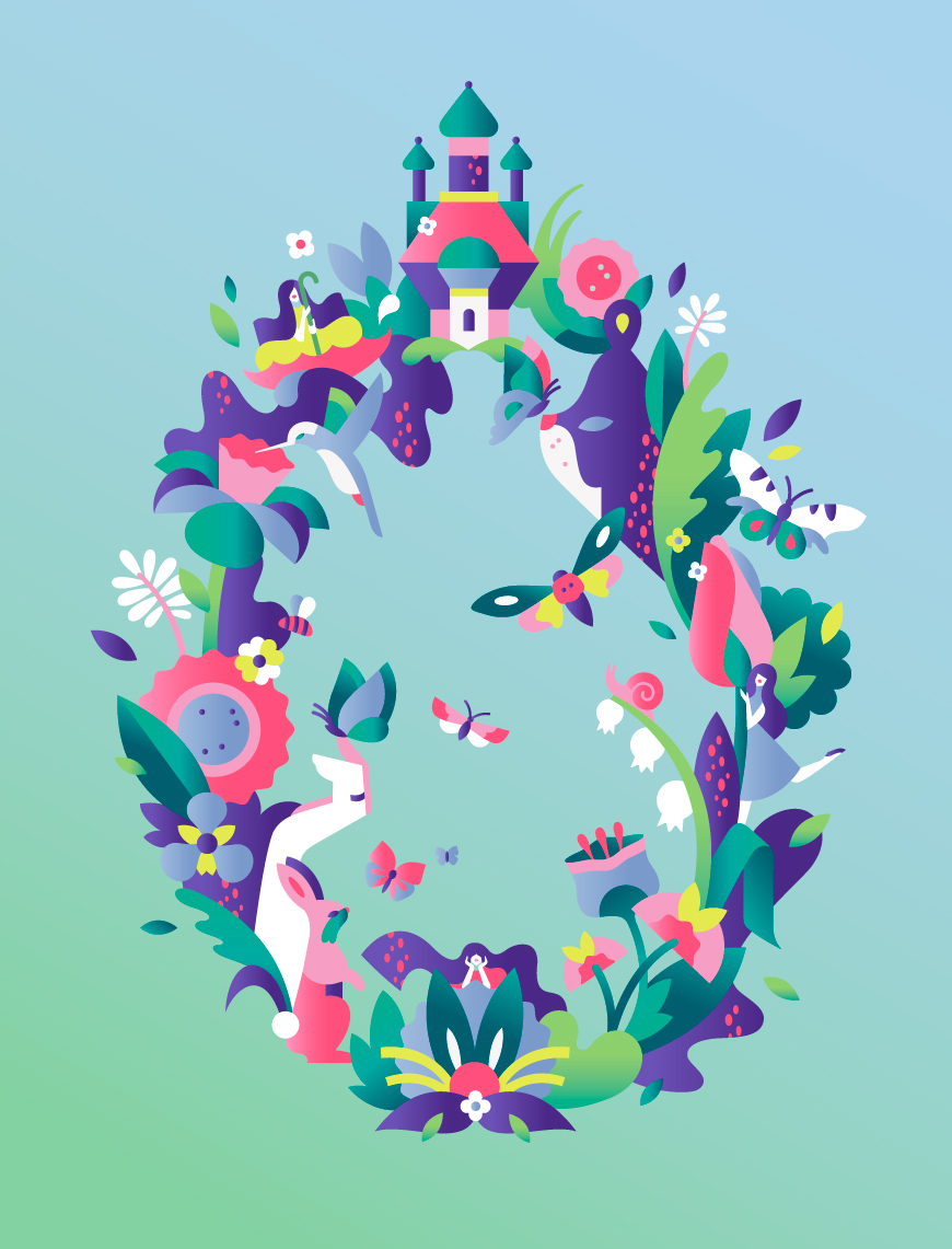 著名插画师Janine Rewell与乐天百货合作,将《LovelySpring》插画作品进行了立体的美陈装置衍生,春天鲜艳迷人的颜色,生机勃发的植物,欢快的动物们,还有热气球等,各类春天元素结合得恰到好处。